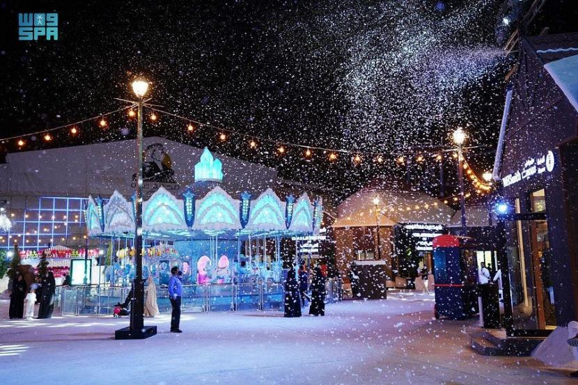 GOnews.id Lifestyle, RIYADH — Festival Riyadh Season telah menerima pengunjung yang tidak bermasker dengan kapasitas penuh, Ahad (6/3/2022). Aturan ini diberlakukan usai sebelumnya hanya menerima jumlah terbatas karena tindakan pencegahan pandemi virus corona selama periode terakhir.
