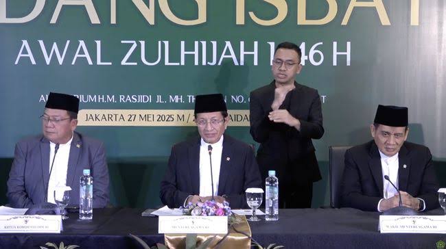 Penetapan ini diumumkan dalam rangkaian Sidang Isbat yang digelar di Auditorium Kemenag, Jakarta, Selasa (27/5/2025). Dalam seminar pendahuluan, Cecep Nurwendaya, anggota Tim Hisab Rukyat Kemenag, menjelaskan bahwa hasil hisab menunjukkan hilal telah memenuhi kriteria visibilitas yang disepakati negara-negara anggota MABIMS, yaitu tinggi minimal 3 derajat dan elongasi minimal 6,4 derajat.