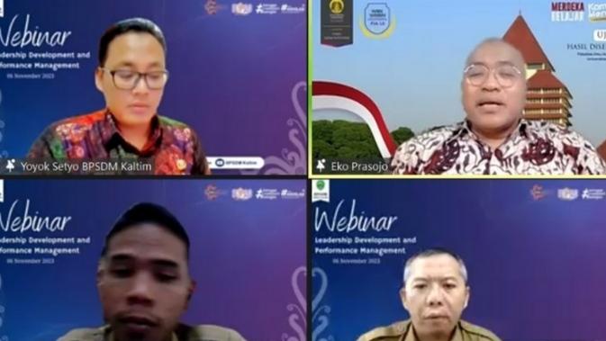 Samarinda – Badan Pengembangan Sumber Daya Manusia (BPSDM) Provinsi Kalimantan Timur Corporate University melalui bidang PKMF menggelar Webinar dengan Tema “Leadership Development and Performance Management” bagi Para Pejabat Pimpinan Tinggi dan ASN di Lingkungan Pemerintah Provinsi dan Pemerintah Kabupaten/Kota se-Kaltim maupun di luar Kaltim, Senin (6/11/23) lalu.