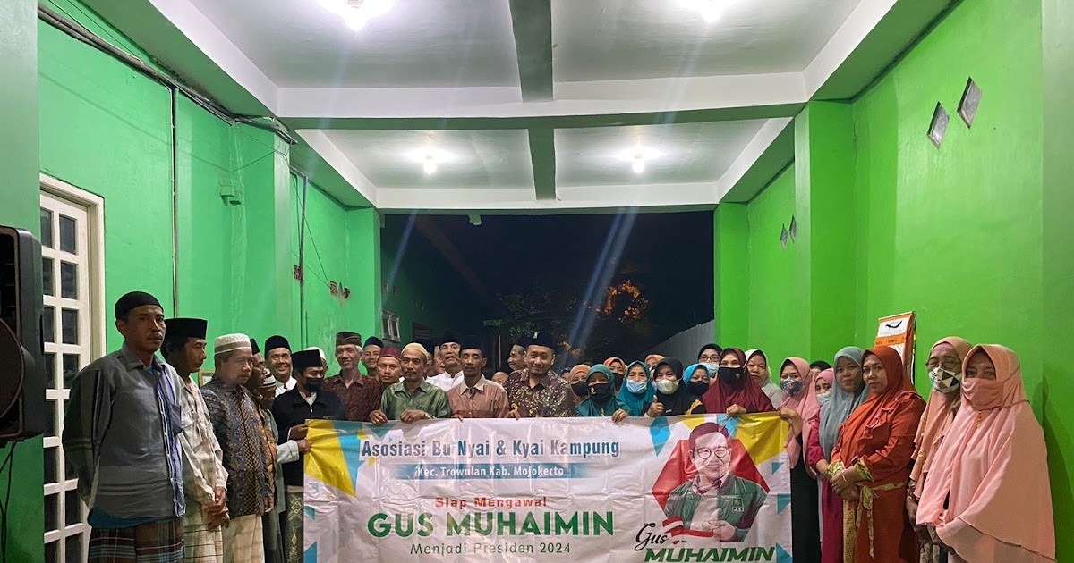 Mojokerto – Sejumlah Kiyai dan Bu Nyai kampung di Kabupaten Mojokerto mendukung Ketua umum PKB Abdul Muhaimin Iskandar (Cak Imin) maju calon presiden (capres) 2024.