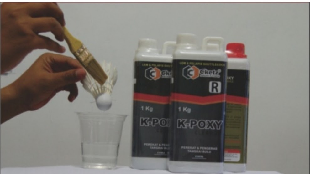 Memakai lem untuk kok haruslah memiliki daya rekat yang tinggi. Berbagai lem yang gunakan kami merekomendasikan lem K-Poxy clear 21. Lem ini untuk perekat dan pengeras tangkai bulu. Berbagai lem dari perusahaan c’ketz juga memiliki kualitas yang sama seperti waterbord 2-K, clear epoxy, dan k-one hard.
