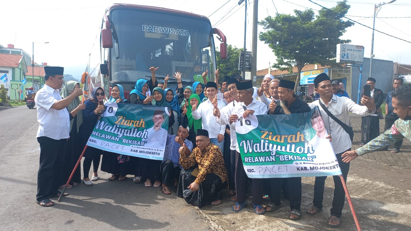 Mojokerto – Kesan gembira puluhan ribu warga yang tergabung dalam relawan Bela Kiai dan Santri atau BEKISAR. Relawan yang tinggal di 18 kecamatan se Kabupaten Mojokerto, mengaku merasa bersyukur dan senang. Hal itu, karena mereka telah mendapatkan kesempatan mengikuti wisata religi wisata wali limo gratis yang diadakan oleh Wakil Bupati Mojokerto Muhammad Al Barra.
