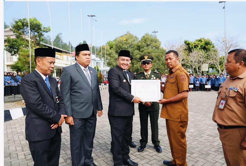 Upacara yang dihadiri oleh Forkopimda, Sekda Alpian, para staf ahli, asisten, kepala SKPD, serta seluruh ASN di lingkungan Pemkot Sungai Penuh ini juga diselingi dengan penyerahan penghargaan kepada desa-desa yang aktif mengelola sampah secara mandiri melalui program TPS3R.