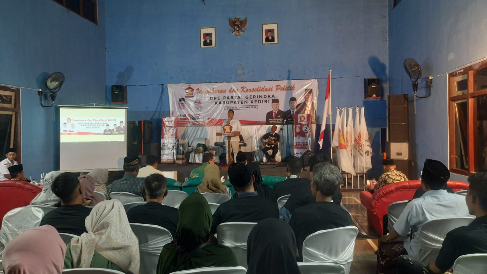 Ratusan Kediri – Dihadiri oleh ratusan kader, Dewan Pimpinan Cabang (DPC) Partai Gerindra Kabupaten Kediri mengenalkan pasangan calon yang diusung Partao Gerindra pada Pilgub Jawa Timur dan Pilbup Kediri. Turut hadir paslon yang diusung dalam Pilbup Kediri 2024 yakni Hanindhito Himawan Pramana dan Dewi Maria Ulfa (Dhito-Dewi).