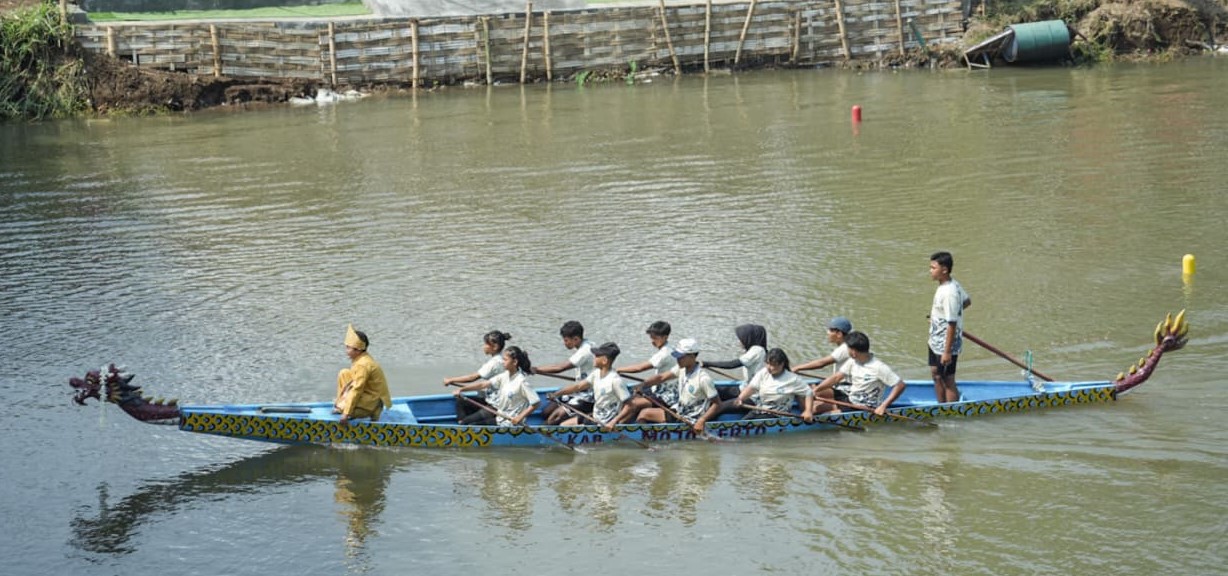 Suasana semakin meriah ketika para kontingen memperlihatkan kemampuan mereka dalam lomba perahu naga di Sungai Ngotok. Antusiasme peserta dan masyarakat menjadi bukti bahwa olahraga air memiliki daya tarik tersendiri di wilayah yang kaya sumber daya air ini.