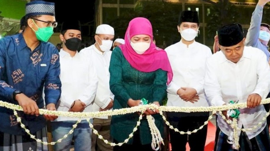 Mojokerto – Gubernur Jawa Timur Khofifah Indar Parawansa meresmikan Grab One pesantren one produk (OPOP) Mart Amanatul Ummah di Kampus IKHAC Pacet, Mojokerto, Senin (11/4/2022).