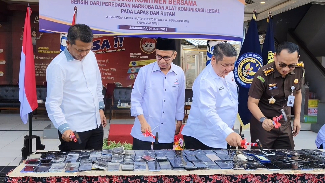 Sebagai langkah konkret, kegiatan ini juga disertai dengan pemusnahan 87 unit handphone hasil sitaan dari operasi penggeledahan rutin sepanjang tahun 2025. Barang-barang tersebut berasal dari 13 Lapas dan Rutan yang tersebar di wilayah Kalimantan Timur dan Utara.