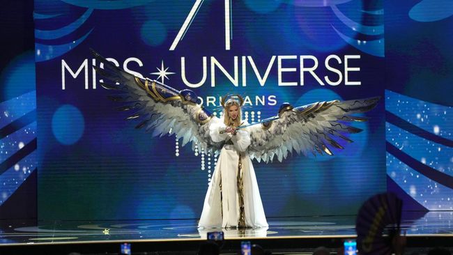 Jakarta — Miss Ukraina Viktoria Apanasenko tampil menawan dalam sesi National Costume Miss Universe 2022 di New Orleans, Amerika Serikat (AS), Rabu (11/1/2023) lalu. Ia tampil mengenakan busana yang terinspirasi dari perang yang terjadi di negaranya akibat invasi Rusia.