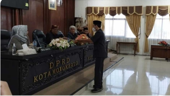 Mojokerto – DPRD Kota Mojokerto menggelar Rapat Paripurna yang dihadiri oleh 22 dari 25 anggota DPRD Kota Mojokerto. Rapat tersebut dipimpin oleh Ketua DPRD Kota Mojokerto, Sunarto, dan didampingi oleh Wakil Ketua DPRD dari Fraksi Partai Golongan Karya dan Fraksi Partai Kebangkitan Bangsa. Selain anggota DPRD, rapat ini juga hadir Wali Kota Mojokerto, pejabat Forkopimda, dan para kepala Organisasi Perangkat Daerah. Rapat ini bertujuan untuk menyampaikan pandangan umum atas 4 Rancangan Peraturan Daerah (Raperda) Kota Mojokerto Tahun 2023.