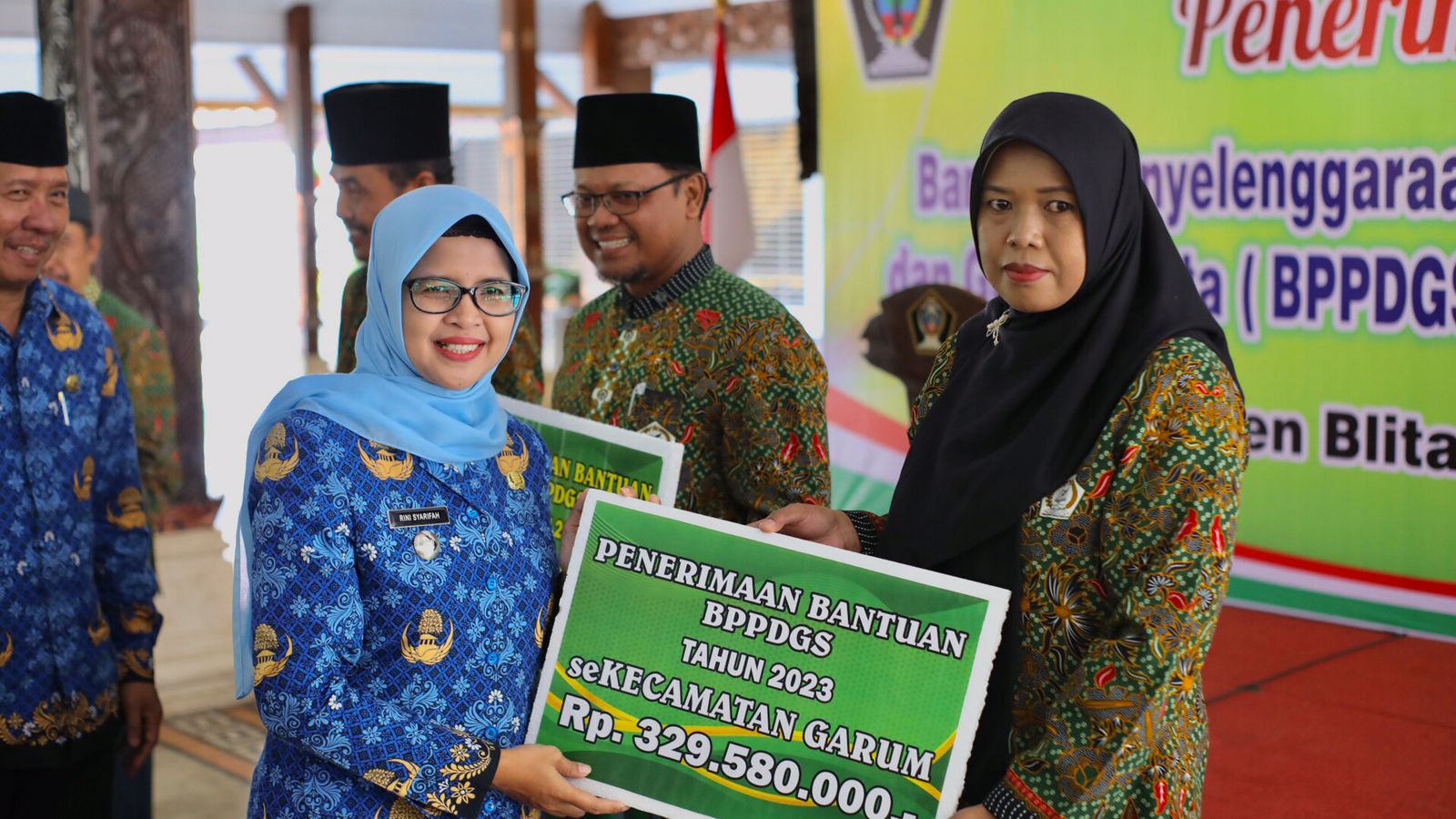 Blitar – Bupati Blitar Mak Rini sapaan akrabnya terus berupaya untuk meningkatkan kualitas pendidikan utamanya di sektor keagamaan. Kali ini, puluhan warga di pendidikan diniyah dan guru swasta menerima bantuan dari Bupati Blitar. Bertempat di Pendopo RHN, nampak jelas sekali penerima bantuan ini merasa senang karena diperhatikan oleh Pemerintah Daerah, Jum’at (17/11/23).