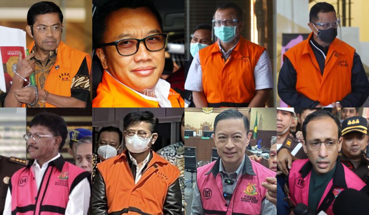 Daftar tersebut diawali dengan Imam Nahrawi, mantan Menteri Pemuda dan Olahraga (2014–2019), yang dipenjara 7 tahun karena suap dana hibah KONI. Lalu Edhy Prabowo, Menteri KKP (2019–2020), yang dijerat kasus suap ekspor benih lobster dan divonis di tingkat Mahkamah Agung.